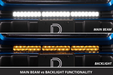 Amber Backlight. All Stage Series LED Light Bars include an integrated amber backlight that fully illuminates the TIR optic, providing distinctive accent lighting and enhanced visibility when parked or stopped on the trail.